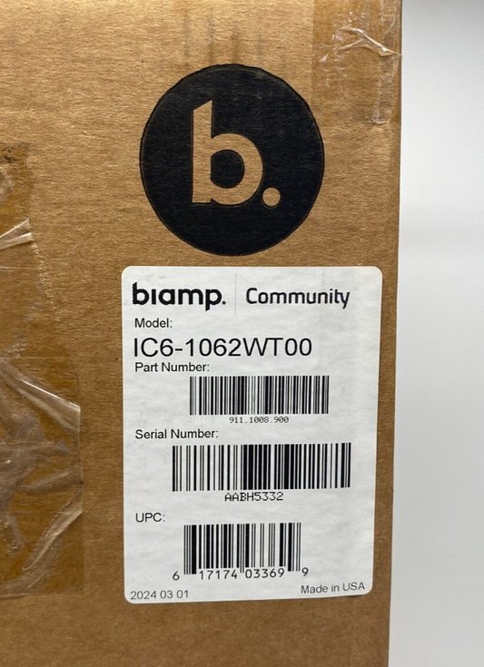 Biamp Community IUB1062WRG U-Bracket for IC6-1062 Speaker, Indoor, WHITE