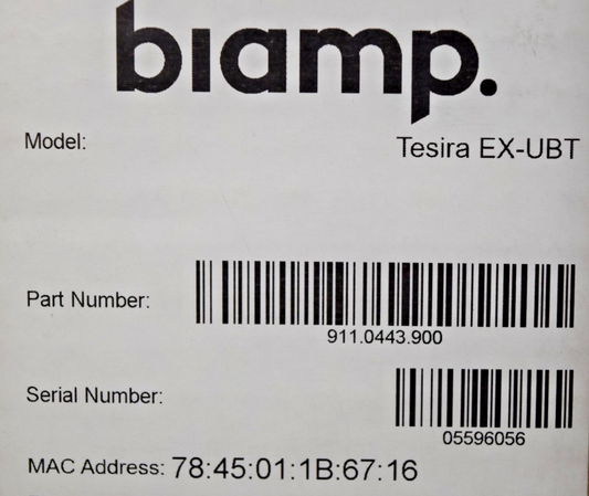 Biamp Tesira EX-UBT PoE AVB/USB Expander/Extender with Wireless Bluetooth