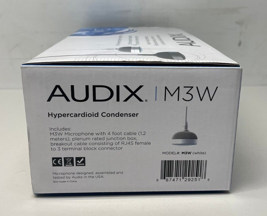 Audix M3 Tri-Element Hanging Ceiling Microphone with 4' Cable (M3W, White)