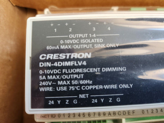 Crestron DIN-4DIMFLV4 DIN Rail 0-10V Dimmer Module, 4 feeds, 4 channels 6501749
