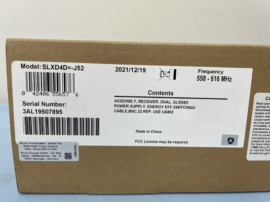 Shure SLXD4D Two-Channel Digital Wireless Microphone Receiver - J52 558-616 MHz