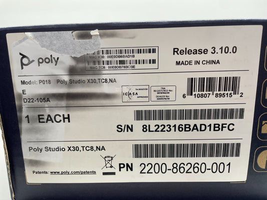 Poly P018 Poly Studio X30 Video/Audio Bar 2200-86260-001 NO TC8 Touch Control