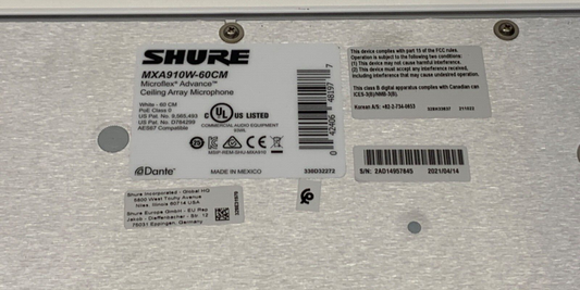 SHURE MXA910W-US - 24" Microflex Advance MXA910 Ceiling Array Microphone - Dante