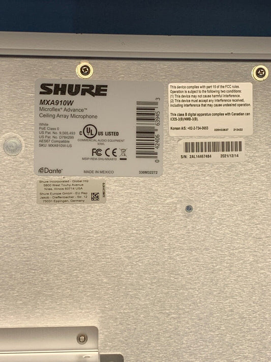 SHURE MXA910W-US - 24" Microflex AdvanceMXA910 Ceiling Array Microphone Dante