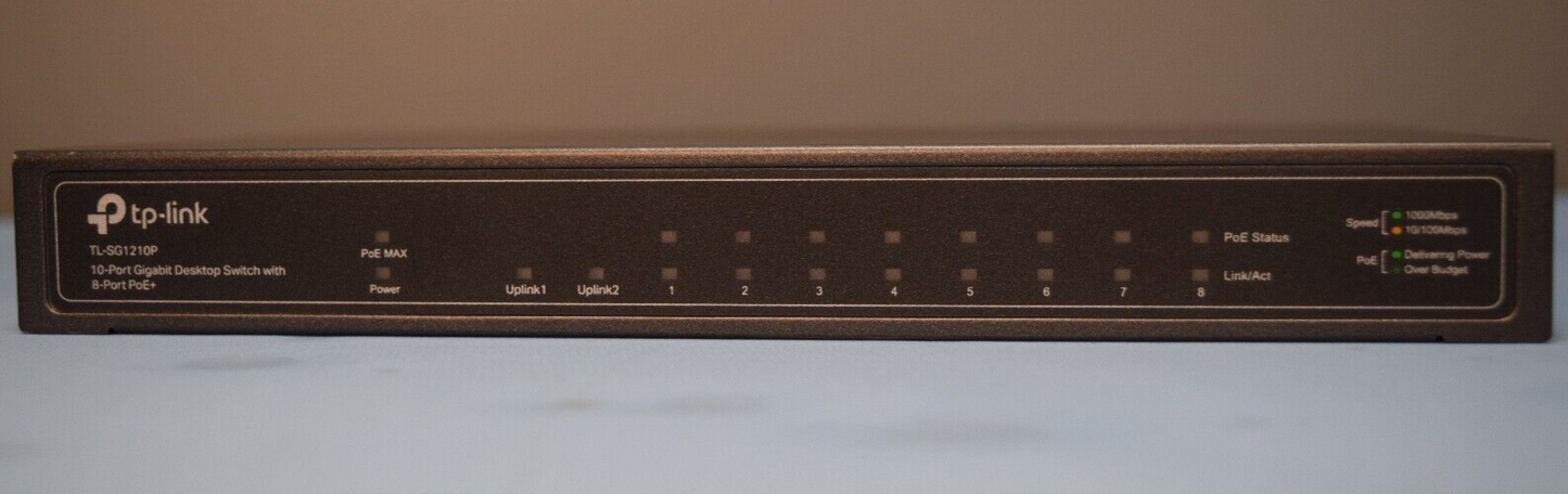 TP-Link TL-SG1210P 10-Port Gigabit Desktop Switch With 8- Port PoE+Power supply included.